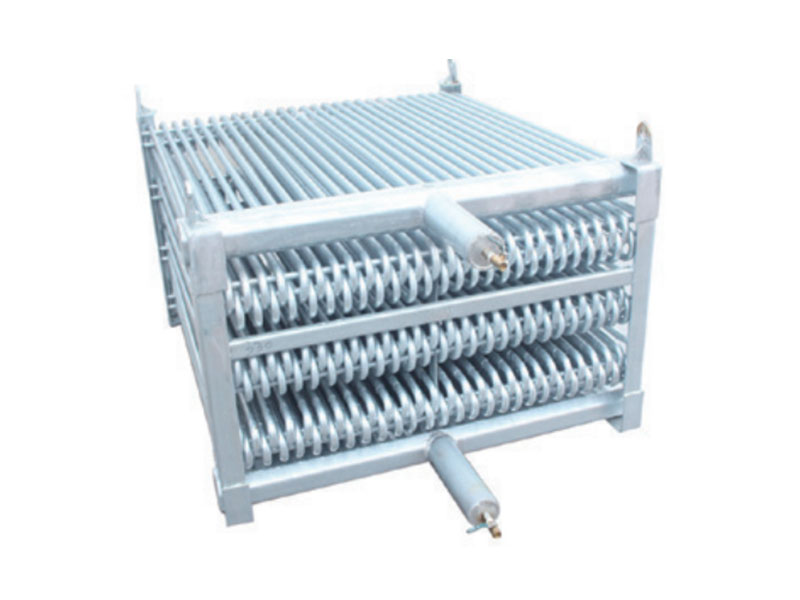 To increase corrosion resistance, the finished coils are placed in a sturdy steel frame and completely immersed in molten zinc at a temperature of 427°C for hot-dip galvanising. The direction of the pipes in the coil corresponds to the direction of the fluid flow, which ensures unobstructed condensate drainage.
